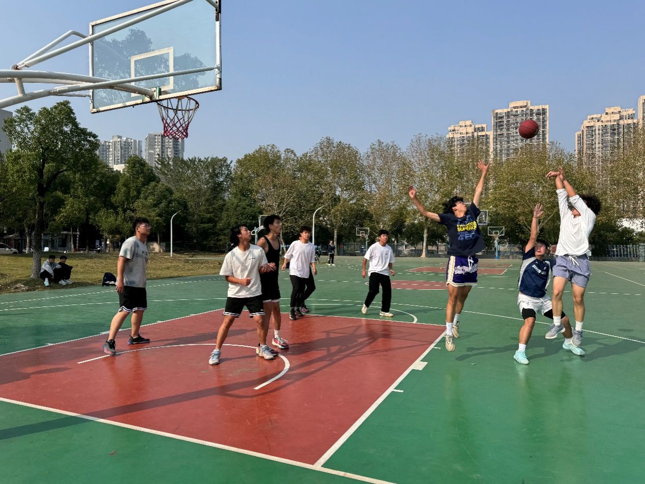 决赛现场气氛热烈非凡,比赛一开始,各支参赛队伍的球员们就迅速进入了状态,展开了激烈的角逐。球员们个个精神抖擞,身手敏捷,他们在球场上各自施展身手的同时也不忘团队配合,他们的每一个动作都充满了力量与技巧。进攻时,球员们巧妙地运用战术配合,或是通过快速传球撕破对方防线,或是依靠个人出色的突破能力直取篮下,一次次将球投入篮筐,激起场下观众的欢呼。防守时,他们则全神贯注,积极拼抢篮板球,严密防守对方的进攻球员,不给对手轻易得分的机会。无论是精彩的三分远投,犀利的突破上篮,还是如神来之笔的篮球截断都瞬间引爆了全场观众的热情,让现场气氛瞬间沸腾起来。来自不同班级的队伍都展现出了独特的团队风格,他们用行动展现了永不言败的精神。