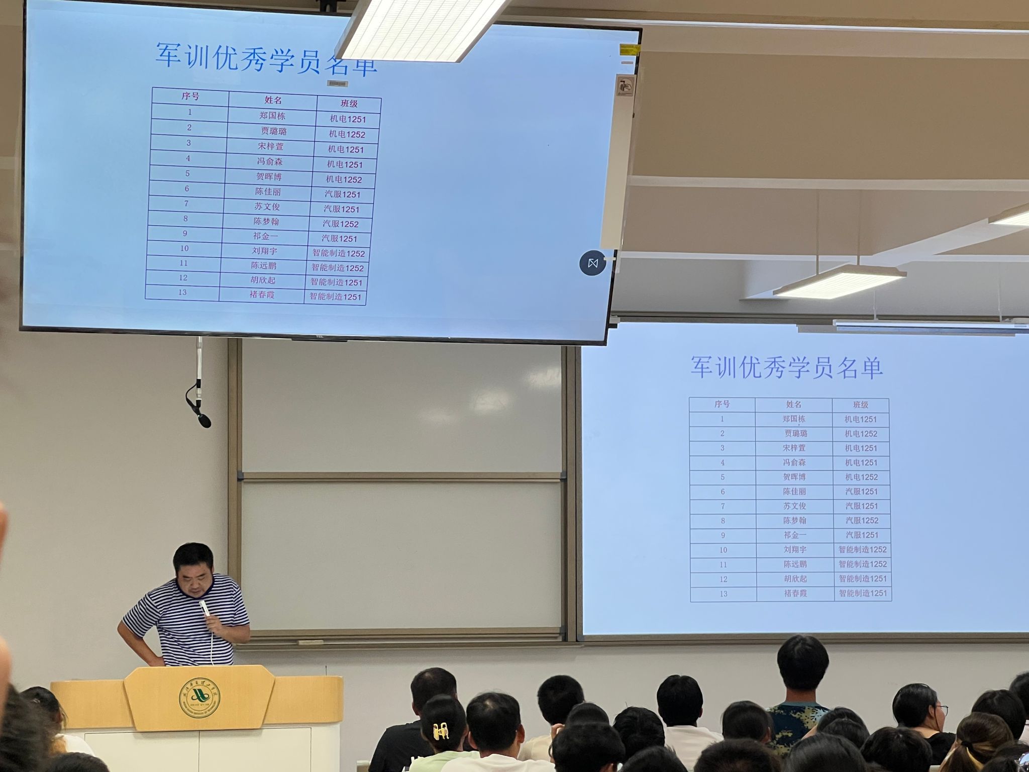 9月28日晚,智能制造学院在梧桐湖校区教室开展2025级新生第一次晚点评主题教育活动,本次活动由辅导员杨海龙老师主持,围绕军训总结、学校校规讲解以及军训优秀学员表彰展开,助力新生总结军训收获、明晰校规,同时表彰先进、激励全体新生。