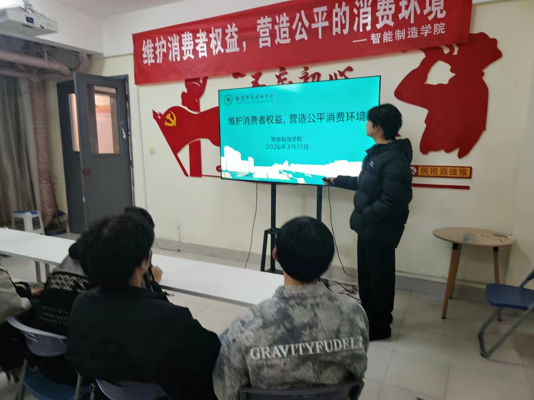 活动现场,学院权益部部长谭志担任主讲人,围绕消费陷阱识别、维权渠道科普、典型案例解析等内容开展生动讲解。同学们认真观看消费维权主题宣教视频,直观了解网络购物、校园消费等场景中的常见侵权行为及防范技巧。在互动交流环节,同学们结合自身消费经历分享困惑与经验,系统学习了通过12315平台、学校维权通道等合法途径维护自身权益的具体方法,切实增强了维权意识与自我保护能力。