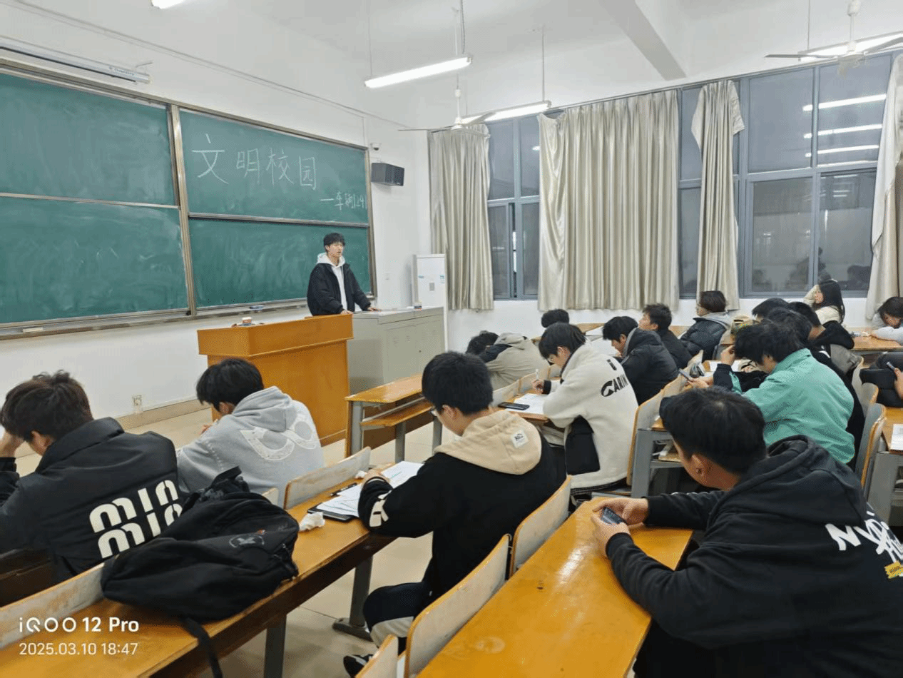 班会伊始,班长神情严肃且满怀期待地走上讲台,以一段发人深省的话语开启了本次班会:“同学们,校园文明和优良学风,是我们成长成才的基石。一个充满文明气息、学习氛围浓厚的班级,将为我们每个人的未来发展注入强大动力。”随后,班长通过精心制作的PPT,展示了多组对比图片。其中,既有校园里整洁的图书馆、同学们安静自习的场景,也有一些破坏校园环境、课堂秩序混乱的不文明现象抓拍。鲜明的对比,让同学们深刻认识到文明校园学风建设的紧迫性和重要性。