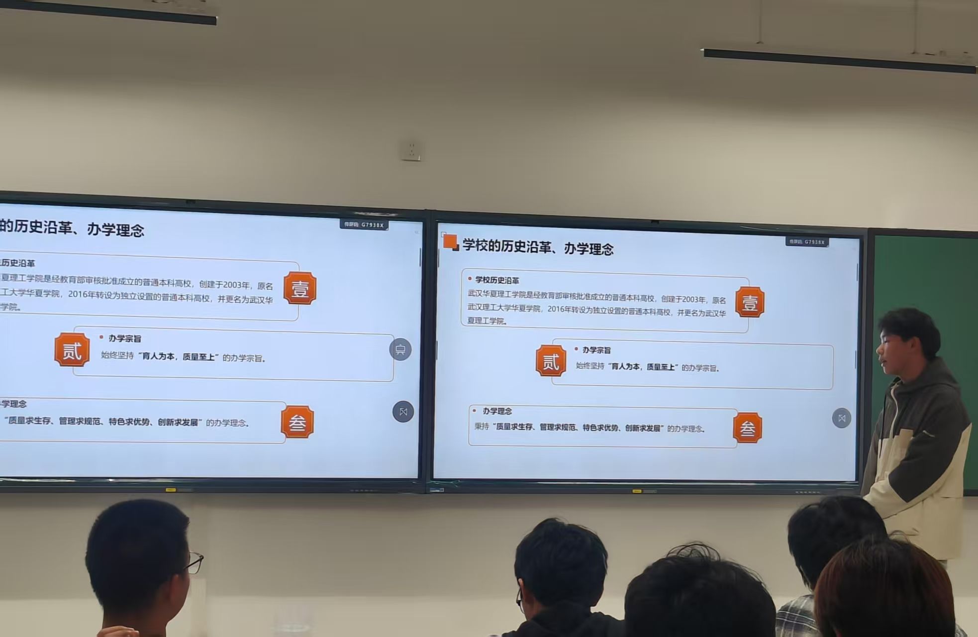 学校的历史沿革与办学理念在屏幕上铺展,从2003年的肇始到如今的行稳致远,“育人为本”的初心始终清晰。主持人轻声道:“校规是学校精神的具象,我们守的不仅是条文,是一代代学子传下来的底色。”教室里的呼吸慢了半拍,那些印刷体的规则,忽然成了与校史共振的心跳。