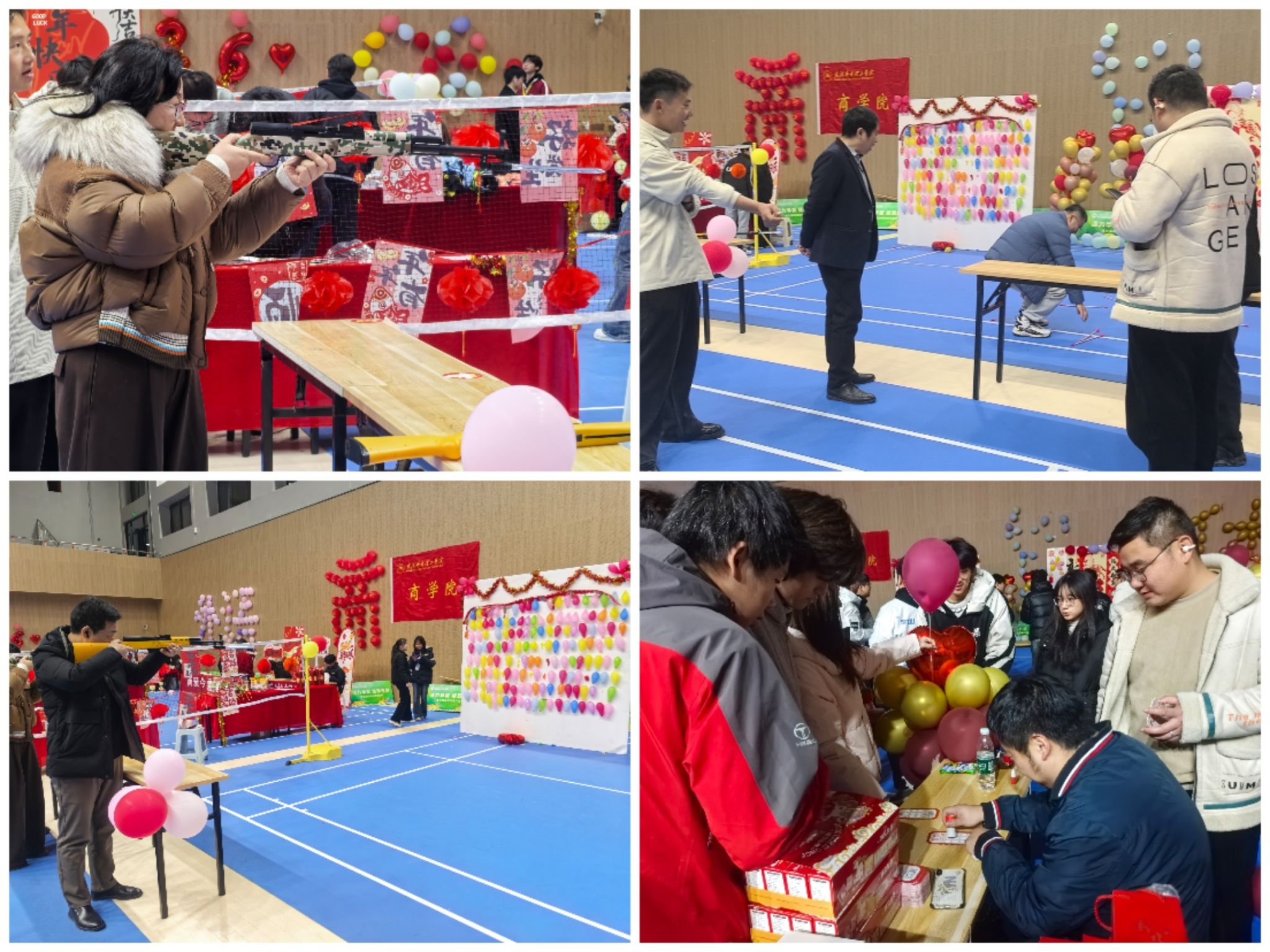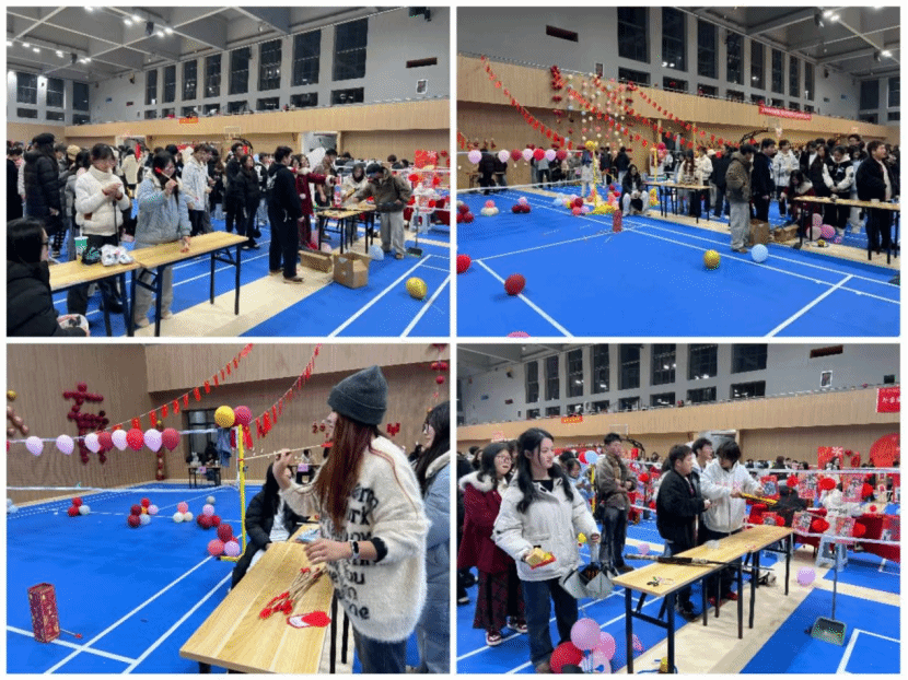 老师们的参与让现场氛围愈发热烈,学生们也纷纷投身各项游戏之中。投壶区里,同学们手持箭杆凝神瞄准,为投中目标欢呼雀跃;射击摊位前,大家排着队体验仿真射击,比拼谁的枪法更准。活动现场的学生表示:“老师们和我们一起玩游戏,感觉特别亲切,这样的元旦活动既有趣又有意义,让我们感受到了学院大家庭的温暖。”