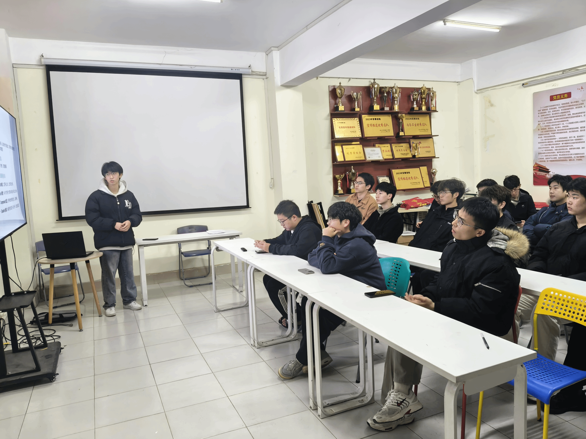 3月19日,在二号楼学生社区,我院“我为同学做实事”系列活动之健康运动分享会在辅导员社区顺利举办。本次活动由刘成义同学主讲,特邀校园健身达人马旭灿、严维作为嘉宾,围绕科学健身与健康管理主题展开交流,切实为同学们传递健康生活理念。