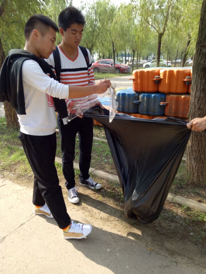 早上八点,同学们骑着自行车,手提垃圾袋,抵达藏龙岛。分配好小组之后,各小组沿着藏龙岛周围开始了捡垃圾活动。活动刚开始时,大家都还比较拘谨,但看到班委积极主动地捡垃圾后,其他人也很快投入到活动中。