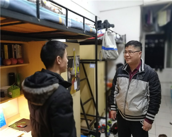晚点名后,张青老师亲临宿舍确保请假同学的安全,就宿舍安全卫生问题强调,不使用违章电器,保持宿舍的干净整洁,才能给学习和生活创造一个良好的环境。针对即将到来的假期,张老师提出必须注意校内校外的安全,平平安安的回家过年。张老师还特别的与考研学生进行交流,分享他的经历,并建议下学期开学就要开始复习,寒假买好考研教材。